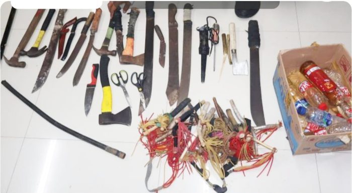 Adapun sajam yang berhasil diamankan yaitu parang, kampak, pisau, ,belati, obeng, gunting, palu, cambuk dan kartapel. Selain itu turut diamankan 9 botol minuman keras (miras). (Redaksi)