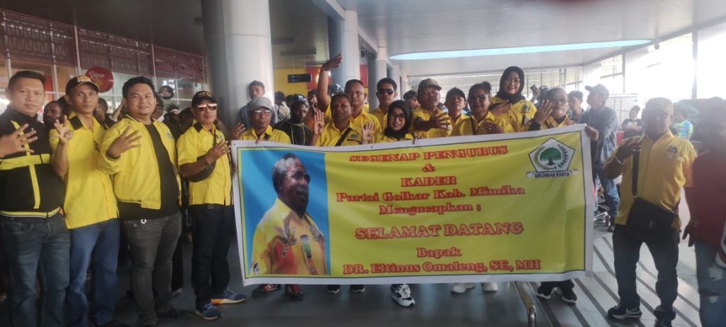 Eltinus yang tiba di Mimika pada Sabtu kemarin tampak dijemput ratusan simpatisan dan keluarga di Bandara Mozes Kilangin diarak menuju Mile 32.