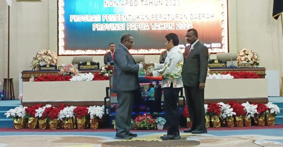 Rapedasi/raperdasus tersebut disahkan dalam Rapat Paripurna Non APBD 2023 bersama eksekutif yang digelar di ruang sidang paripurna DPR Papua, Selasa (19/12/2023).