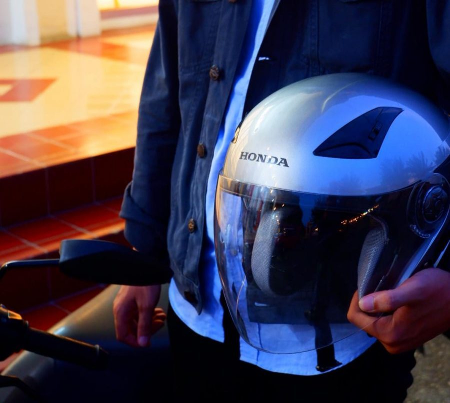 Pilih helm yang ukurannya sesuai dengan kepala kita. Jangan memilih helm yang terlalu sesak karena berpotensi menghambat aliran darah di area kepala yang bisa menyebabkan rasa pusing dan mual.