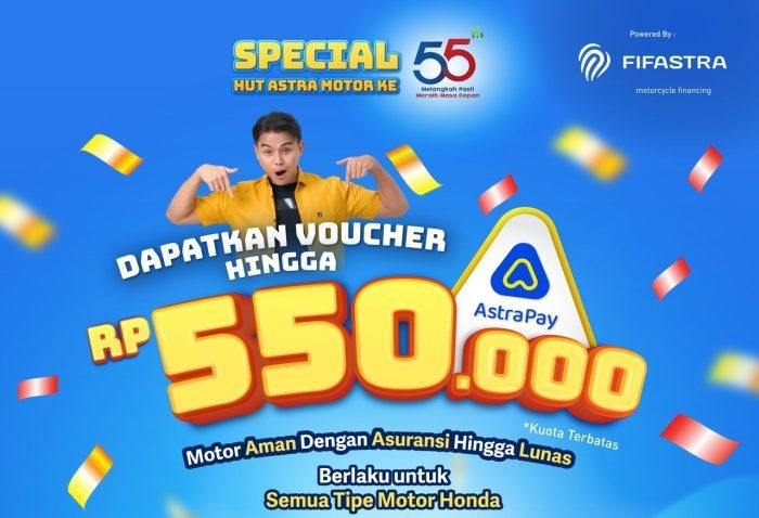 JAYAPURA, Redaksipotret.co – Dalam rangka memperingati Hari Ulang Tahun Astra Motor yang ke-55, Astra Motor bersama dengan FIF Group menggelar program spesial untuk memberikan apresiasi kepada konsumen setianya.