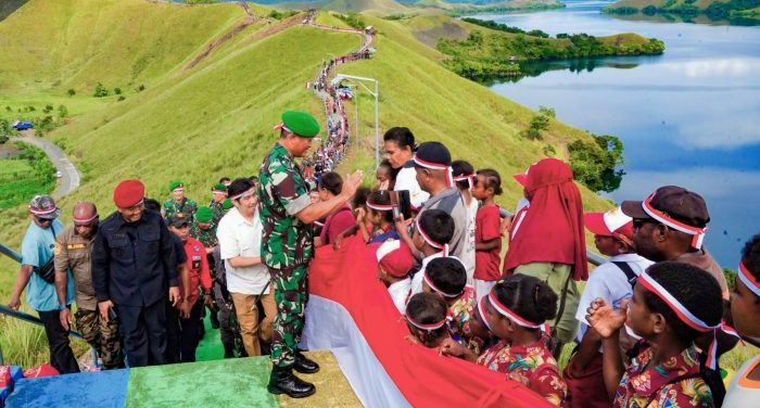 JAYAPURA, Redaksipotret.co – Bendera merah putih sepanjang 1.000 meter terbentang di bukit Tungku Wiri, Kabupaten Jayapura, Provinsi Papua.