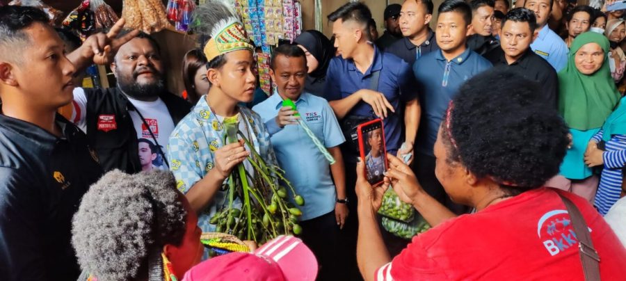 Kedatangan Gibran di pasar yang diresmikan oleh Presiden Jokowi beberapa waktu lalu, merupakan salah satu dari beberapa rangkaian kegiatan kampanyenya di Papua yang dipusatkan di GOR Cenderawasih Kota Jayapura.