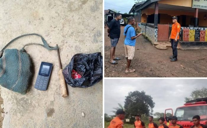 Warga Kampung Butiptiri lalu melakukan pencarian di sekitar kali dan menemukan parang dan tas Noken milik korban yang berisi 1 buah handphone, rokok dan kikir segitiga. Warga menyisir pinggir kali tersebut namun tidak menemukan korban. Kuat dugaan, korban telah jatuh ke kali.