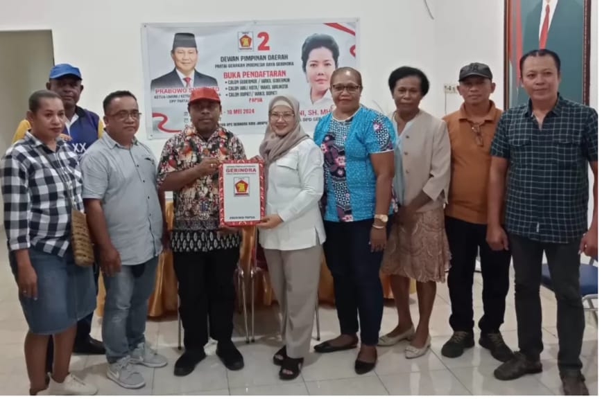 Partai Gerindra sudah mulai membuka pendaftaran bagi peserta bakal calon Gubernur dan Wakil Gubernur Papua secara terbuka sejak 30 April – 10 Mei 2024 di Kantor Sekretariat DPC Partai Gerindra Kota Jayapura yang beralamat di Bucen II Entrop, Jayapura Selatan, Kota Jayapura. Pendaftaran bakal calon kepala daerah ini terbuka untuk umum.