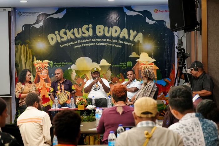 JAYAPURA, Redaksipotret.co – Imaji Papua bekerja sama dengan Balai Pelestarian Kebudayaan (BPK) Wilayah XXII menggelar Diskusi Budaya bertema “Memperkuat Ekosistem Komunitas Budaya dan Kreator untuk Pemajuan Kebudayaan Papua”, Kamis (25/9/2025), di Grand Abe Hotel, Jayapura.