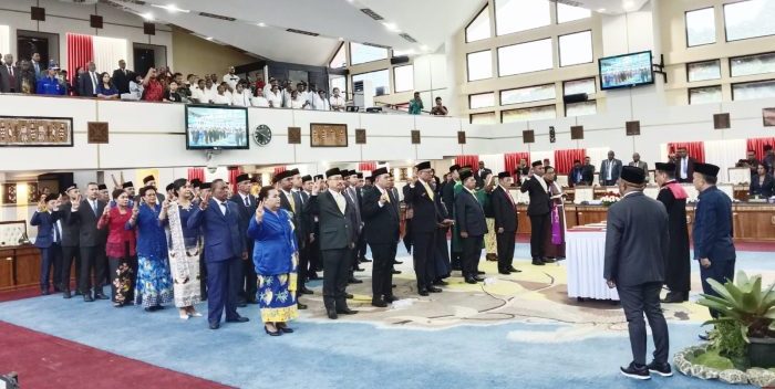 JAYAPURA, Redaksipotret.co – Melalui sidang paripurna, 45 anggota DPR Papua periode 2024 – 2029 resmi dilantik oleh Ketua Pengadilan Tinggi Jayapura, Amin Sutikno, pada Kamis (31/10/2024).