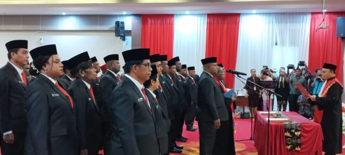 Sebanyak 30 orang anggota DPRD Kabupaten Jayapura hasil Pemilihan Umum Legislatif (Pileg) pada 14 Februari 2024 diambil sumpah dan janjinya dipandu oleh Kepala Pengadilan Negeri Jayapura, Derman P. Nababan.