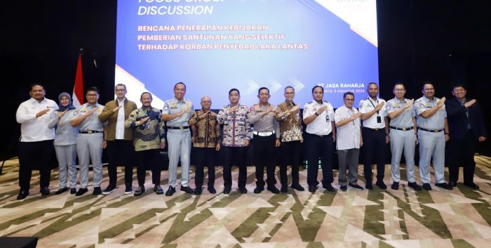 JAKARTA, Redaksipotret.co – Jasa Raharja gelar Focus Group Discussion (FGD) untuk membahas rencana penerapan kebijakan santunan yang selektif terhadap korban penyebab kecelakaan lalu lintas. Forum ini digelar di Ballroom Gedung Jasa Raharja, Jakarta pada Senin (5/8/2024).