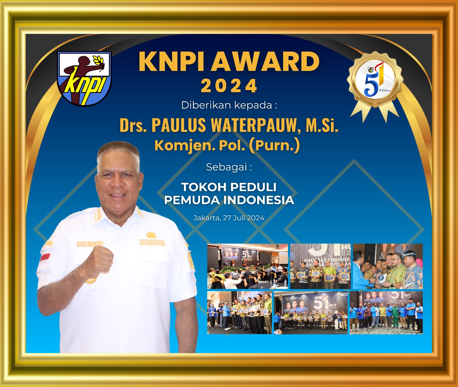 Penghargaan yang diberikan oleh DPP KNPI kepada Paulus Waterpauw bersama 12 tokoh nasional lainnya sebagai bukti nyata dia berkontribusi dalam memajukan Pemuda Indonesia yang akan menjadi pemimpin bangsa di masa depan.