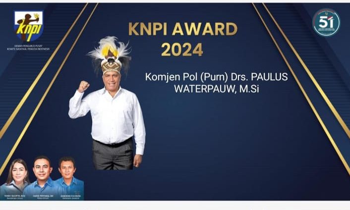 JAYAPURA, Redaksipotret.co – Paulus Waterpauw, kandidat gubernur Papua 2024 dari Partai Golkar akan menerima KNPI Award 2024 yang akan berlangsung, Sabtu 27 Juli 2024, pukul 19.00 – 20.28 di Grand Sahid Jaya Hotel, Jakarta.