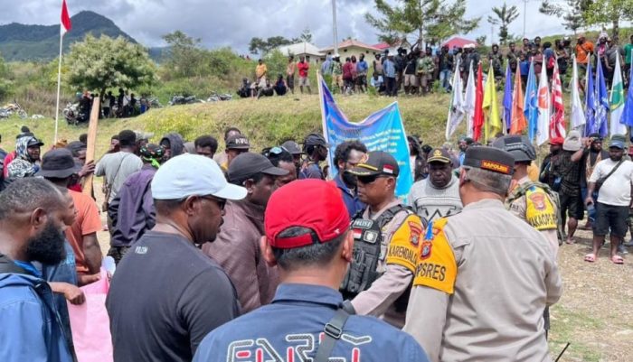 TOLIKARA, Redaksipotret.co – Ribuan massa dari Distrik Geya, Kabupaten Tolikara, Provinsi Papua Pegunungan serta tokoh intelektual dan para pendukung Partai Amanat Nasional (PAN) di Kabupaten Tolikara melakukan unjuk rasa di KPU Tolikara, Selasa (16/7/2024).