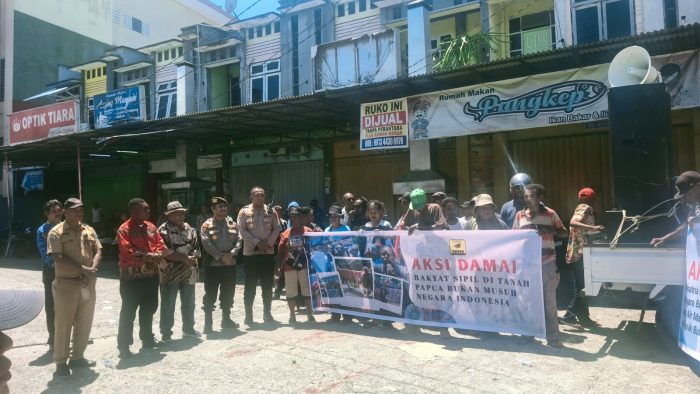 Demo damai yang digelar ini turut mendapat pengawalan aparat keamanan. Namun bukan pendekatan represif, jajaran Polda Papua Barat menerapkan pendekatan humanis dan melayani.