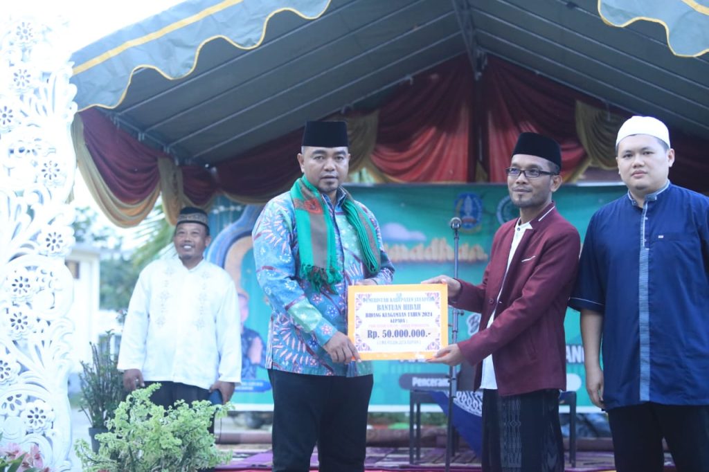 Dalam kesempatan tersebut, Triwarno Purnomo memberikan bantuan dana hibah untuk bidang keagamaan sebesar Rp50 juta kepada pengurus PHBI Masjid Al Ridho.