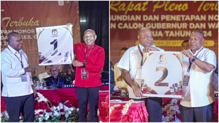 JAYAPURA, Redaksipotret.co – Komisi Pemilihan Umum (KPU) Provinsi Papua menetapkan nomor urut pasangan calon gubernur dan wakil gubernur Papua untuk Pilkada serentak pada 27 November 2024. Penetapan nomor urut dilakukan di kantor KPU Papua pada Senin (23/9/2024) malam.