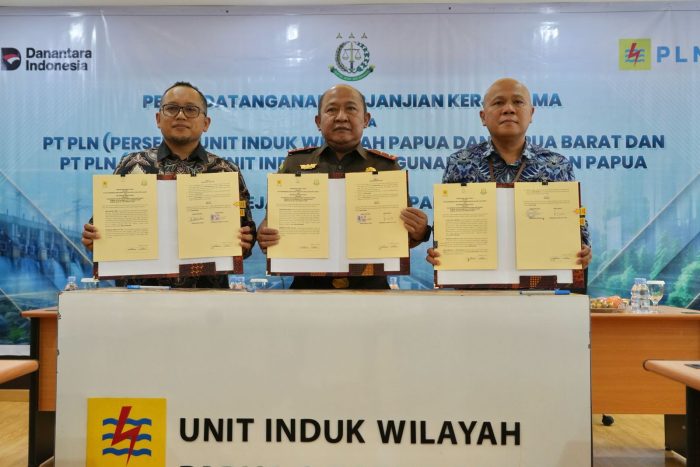 JAYAPURA, Redaksipotret.co – PT PLN (Persero) Unit Induk Pembangunan Maluku dan Papua (UIP MPA) bersama Kejaksaan Tinggi Papua secara resmi menandatangani Perjanjian Kerja Sama pada Senin (14/7/2025) di Kantor UIW P2B, Jayapura.