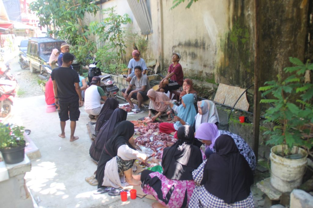Dibantu para kerabat terdekat saat penyembelihan hingga pendistribusian, Hasanudin telah membagikan daging kurban kepada warga sekitar tempat tinggalnya dan kerabat yang datang ke kediamannya.